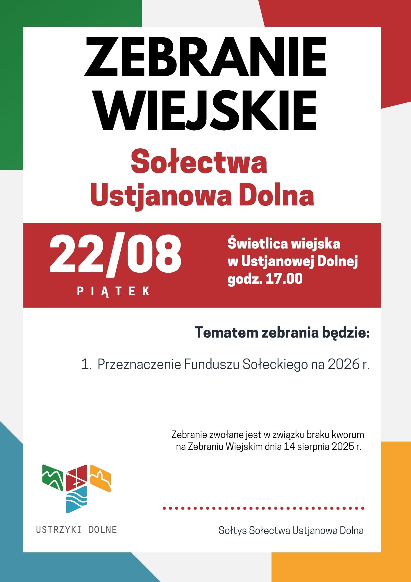 Zebranie Wiejskie Sołectwa Ustjanowa DolnaArchiwum