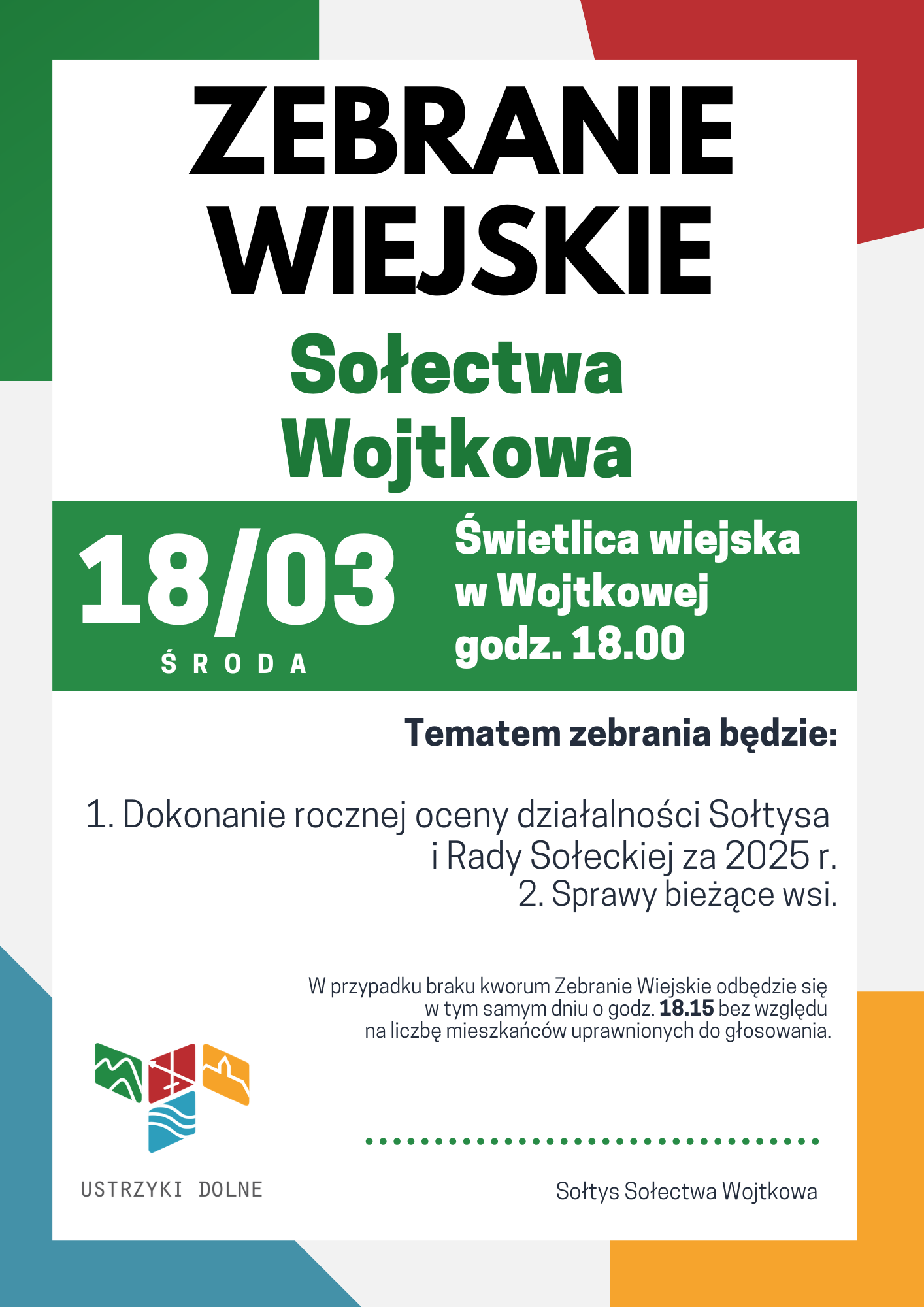 Zebranie wiejskie Sołectwa Wojtkowa 09-03-2026Data publikacji, 09-03-2026, Marcin OrganAutor, Marcin Organ, 20Ilość wyświetleń, 20
