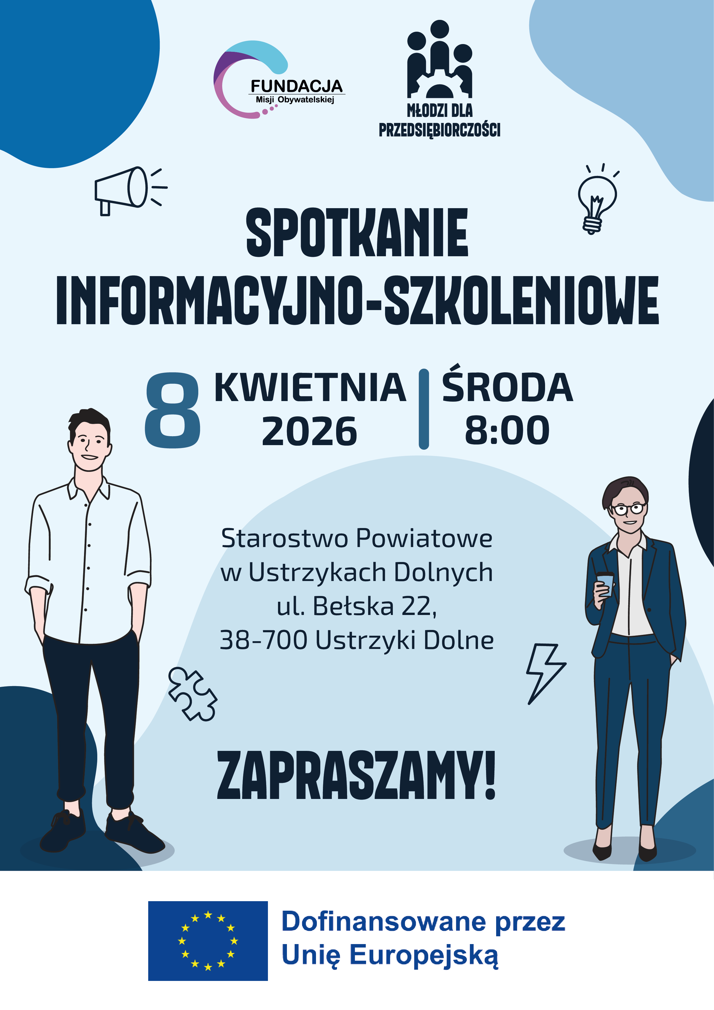 Serdecznie zapraszamy mieszkańców Gminy Ustrzyki Dolne na spotkanie informacyjno-szkoleniowe organizowane przez Fundację Misji Obywatelskiej we współpracy z inicjatywą „Młodzi dla Przedsiębiorczości”.