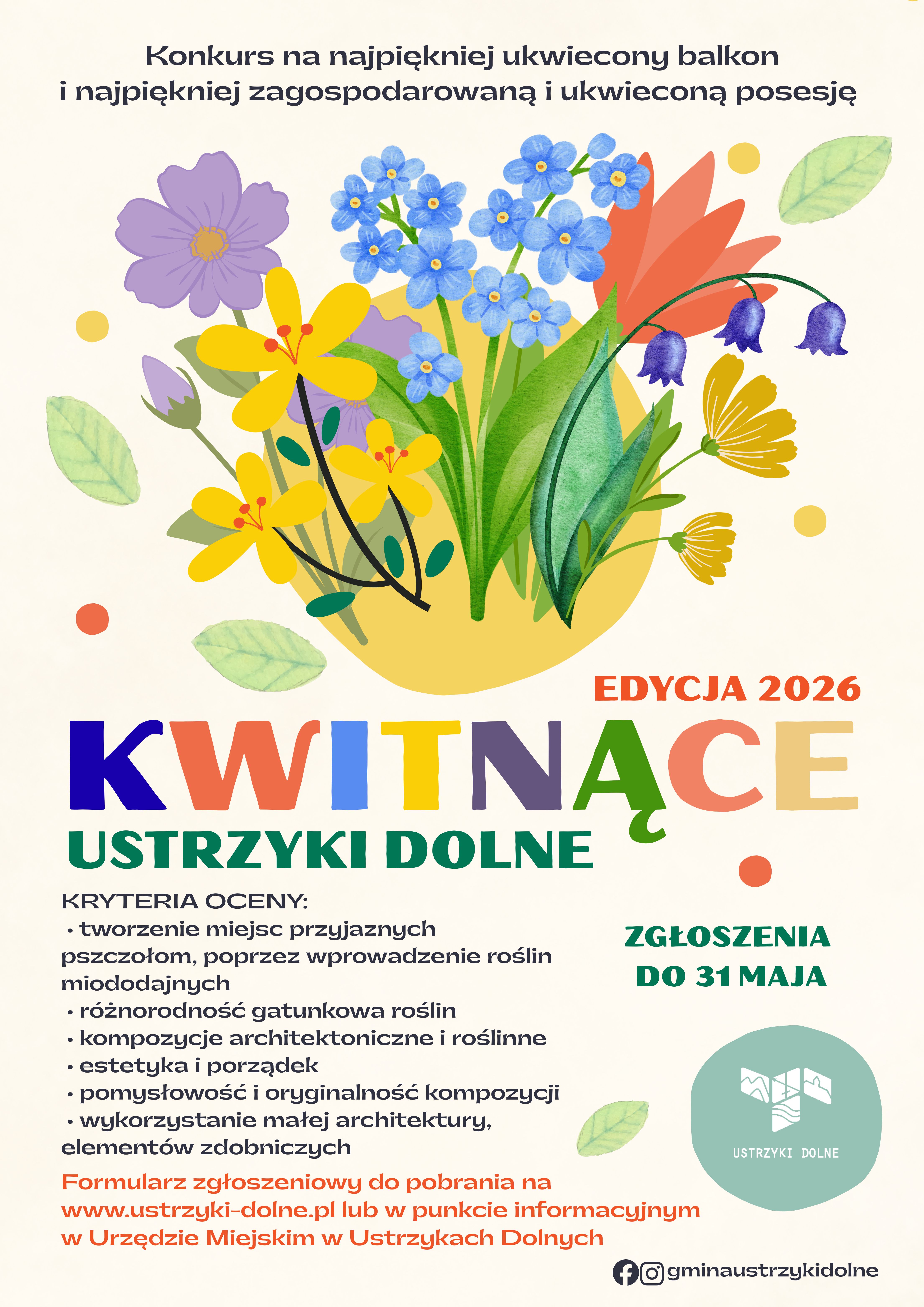 Burmistrz Ustrzyk Dolnych zaprasza mieszkańców do udziału w konkursie na najpiękniej ukwiecony balkon oraz najpiękniej zagospodarowaną i ukwieconą posesję – „Kwitnące Ustrzyki Dolne – edycja 2026”.